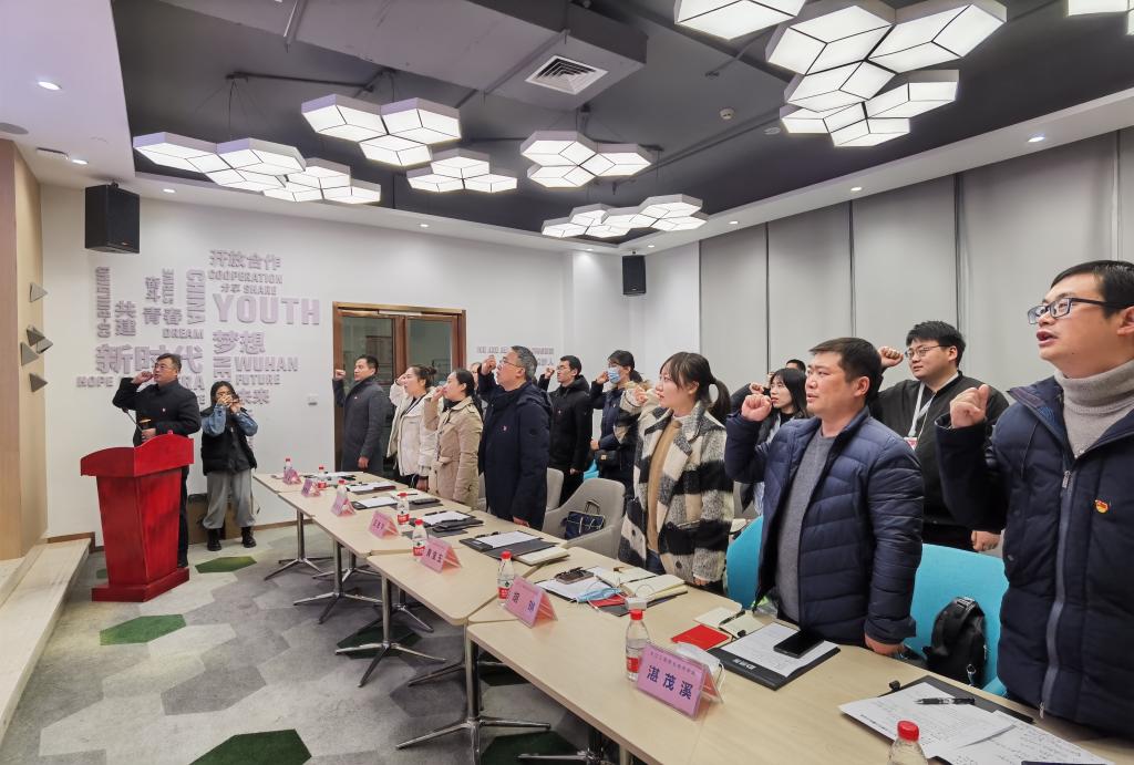 12月14日,谈球吧与武汉德发电子信息有限责任公司在越秀财富中心党员活动中心联合开展“校企共建绘蓝图 共融共通促发展”支部主题党日活动。公司党总支书记汪吉平、党总支副书记黄宝玉,武汉德发教育部总经理韩京燕、德发党支部副书记黎姣姣、市场部经理吴凯、党支部组织委员王文亮、党支部青年委员曾挚及双方党员代表共20余人参加此次活动。