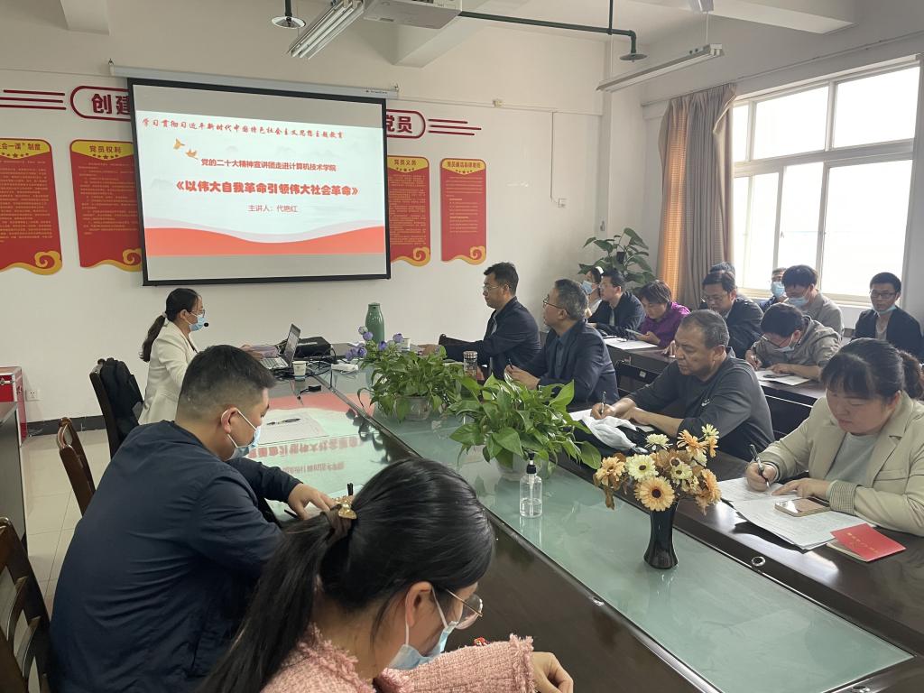 5月10日下午,谈球吧在长江楼736会议室开展主题教育学习,公司宣讲团成员、马克思主义公司专任教师代艳红走进公司宣讲党的二十大精神。公司领导班子、党支部书记、辅导员、全体教师参加了此次学习。