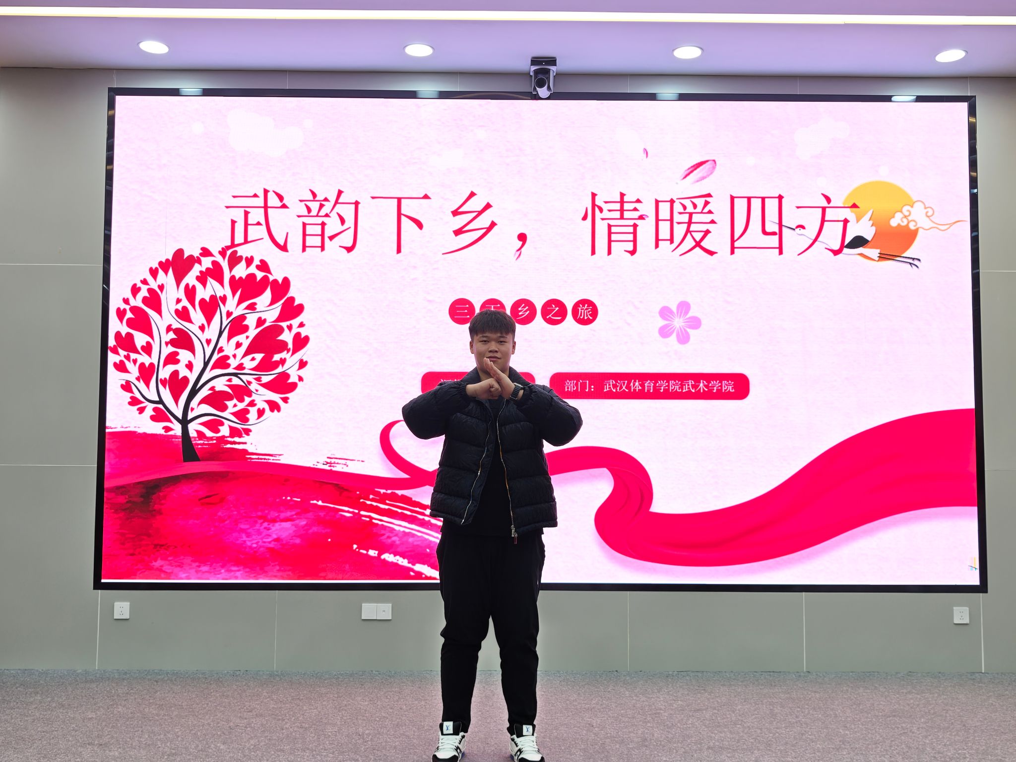 在暑期“三下乡”社会实践团队展示中,我们有幸邀请到武汉体育公司“武韵”志愿服务队代表江国豪,分享了他们以武术专业为依托,前往新疆服务乡村大众的动人故事。