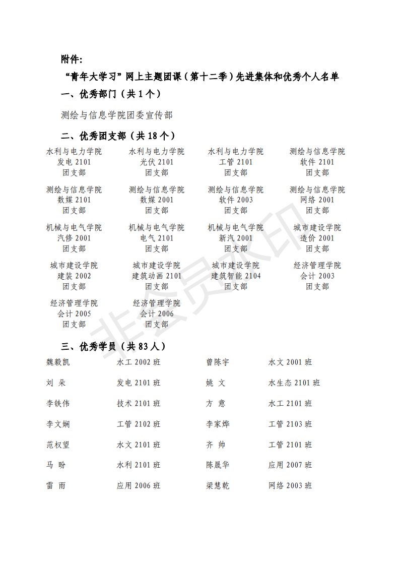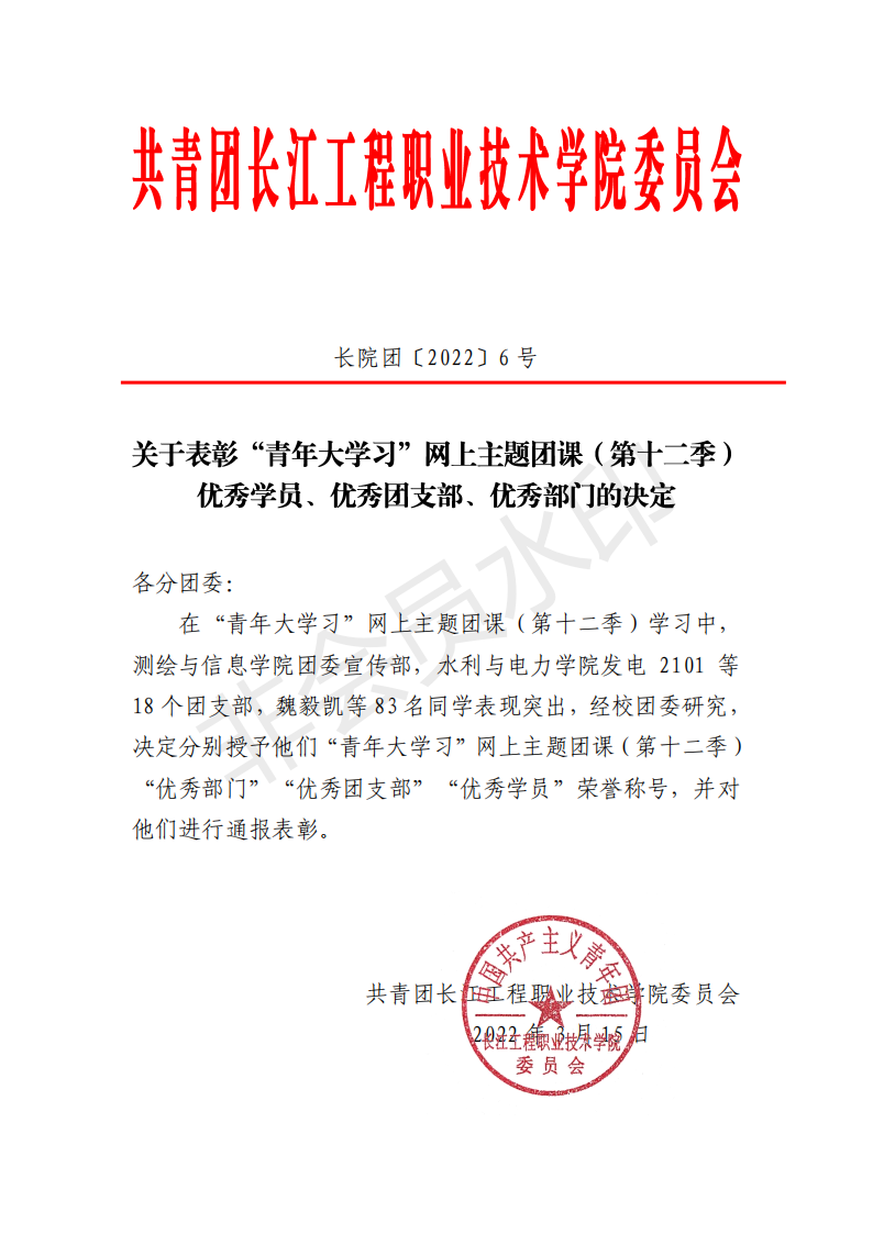 3月16日,校团委发布关于表彰“青年大学习”网上主题团课(第十二季)优秀学员、优秀团支部、优秀部门的决定。