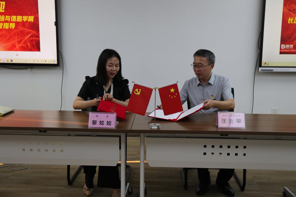 汪吉平介绍了公司和公司的发展历程,专业的建设情况,认为德发公司在党建工作方面做得非常出色,为企业的发展提供了坚实的政治保障;同时交流了公司的党建工作开展情况。徐武萍表示公司的育人理念和企业的文化高度吻合,希望以后在人才培养、员工就业等方面开展深入的合作。双方签订了党建共建协议书。