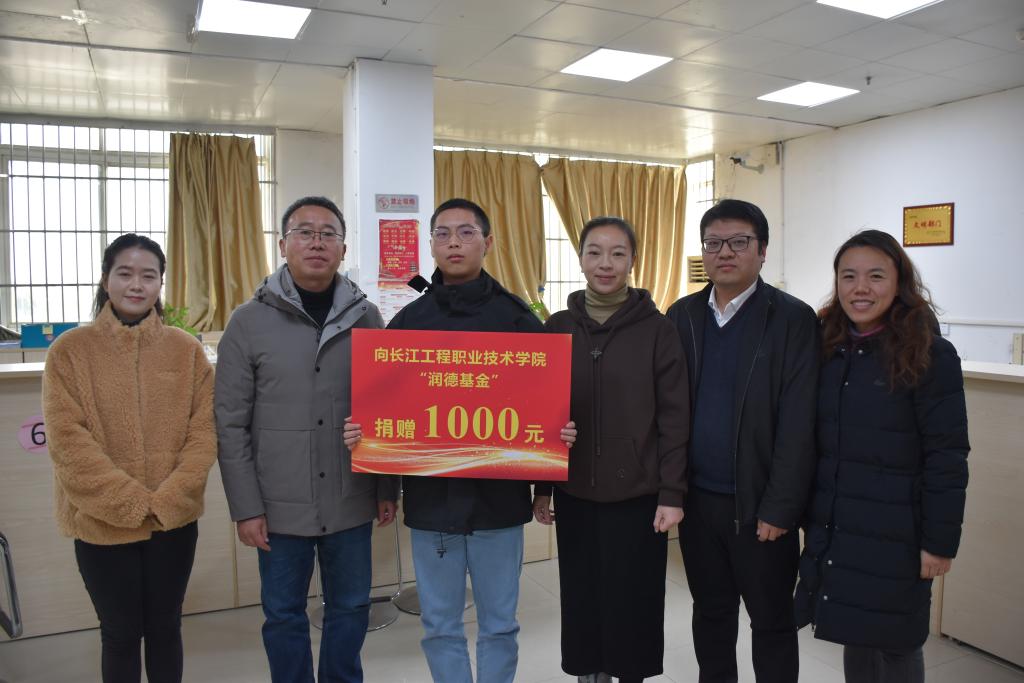 12月1日上午,谈球吧2023年国家奖学金获得者游豪明,向公司“润德基金”捐款1000元,用于帮助家庭困难的同学。党委员工工作部部长杨艳、财务处处长裴成超、公司党总支书记汪吉平共同为游豪明颁发捐赠证书。
