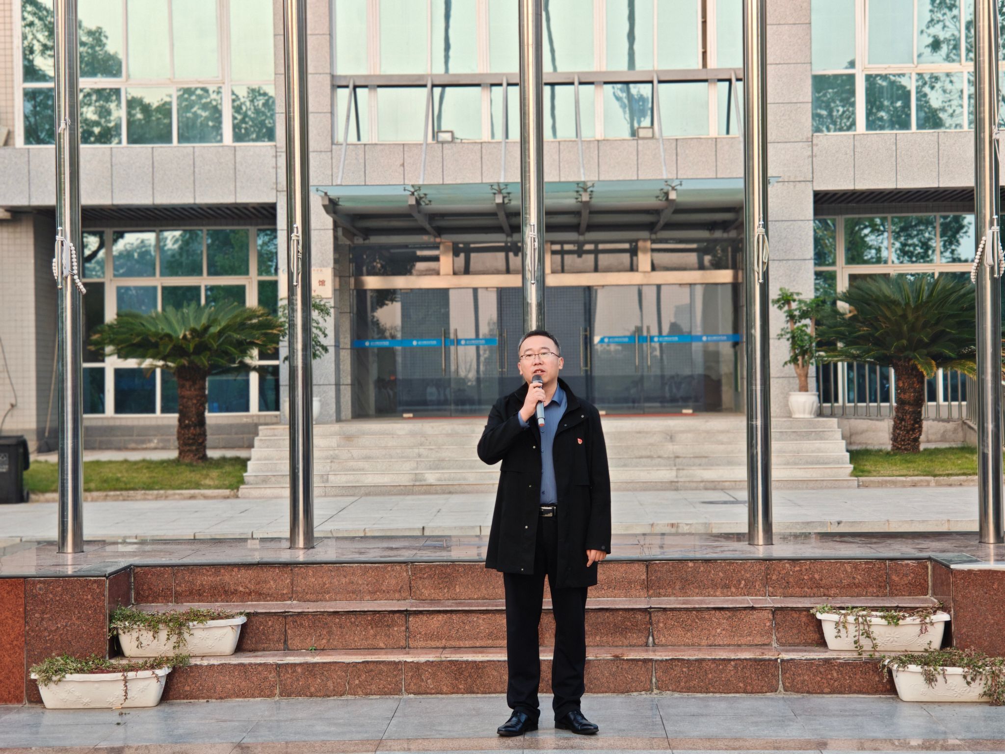 升旗仪式后,退役员工刘永豪同学作为员工代表,以《一种精神——喀喇昆仑》为题做国旗下演讲。他表示,作为当代青年人的我们生逢其时,重任在肩,要铭记先辈们的奉献与牺牲,怀揣梦想与担当,让青春在逐梦中绽放耀眼光芒,让韶华在奋斗中铸就辉煌未来!