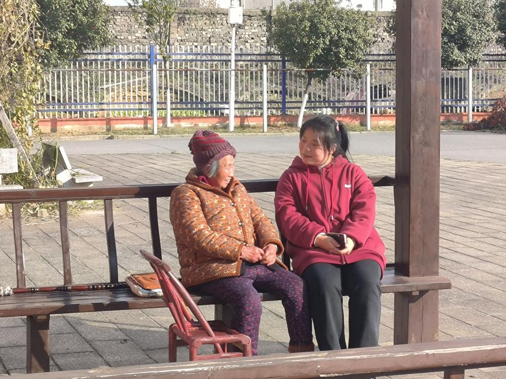 餐厅外,同学们三五一组,分工合作。有的陪老人聊天,有的打扫卫生,忙的不亦乐乎。同学们与老人们像家人一样其乐融融,欢声笑语不断。