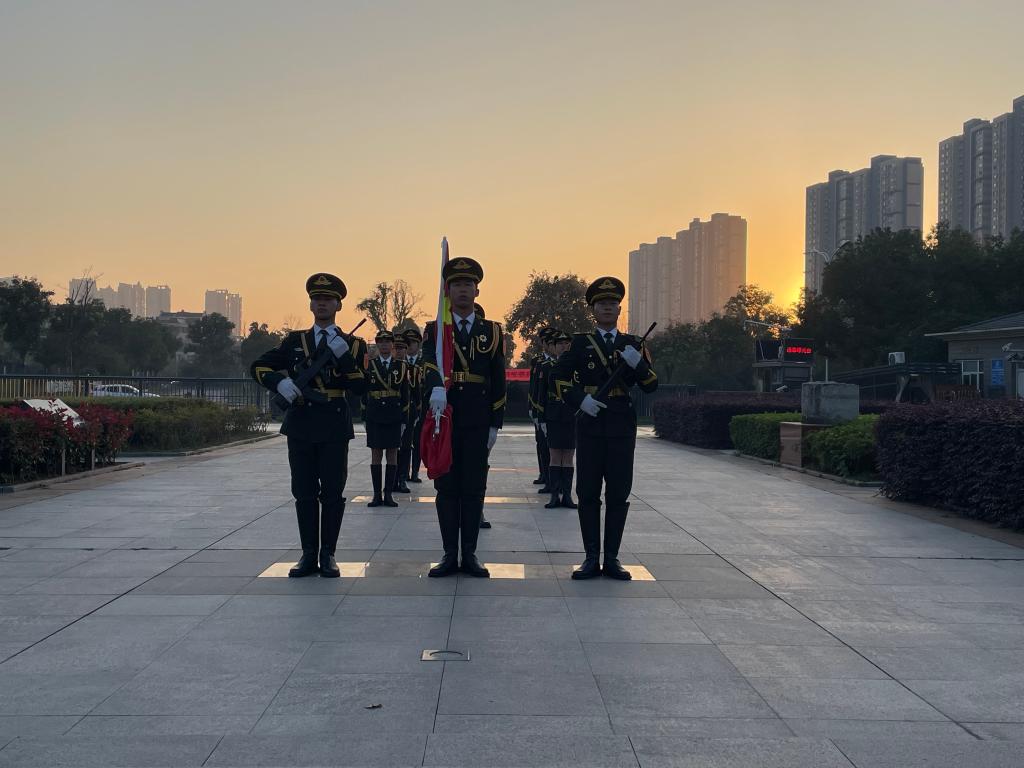 早上七时整,升国旗仪式正式开始,伴随着雄壮的《义勇军进行曲》,五星红旗在晨光中冉冉升起,一抹“中国红”凝聚着无比磅礴的中国力量和壮志凌云的时代梦想。
