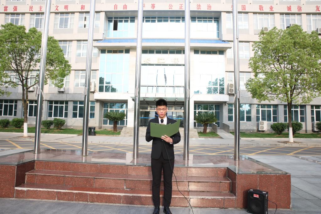 物联网2102班范基祥作为员工代表,做国旗下讲话。他号召同学们在日常学习生活中,主动亮明团员身份,率先垂范,以身作则,做一件件力所能及的“好事”,从我做起、从小事做起、从现在做起。共同携手营造一个人人向善,人人行善,人人从善的良好氛围,为建设和谐美丽的文明校园贡献出自己的青春力量。