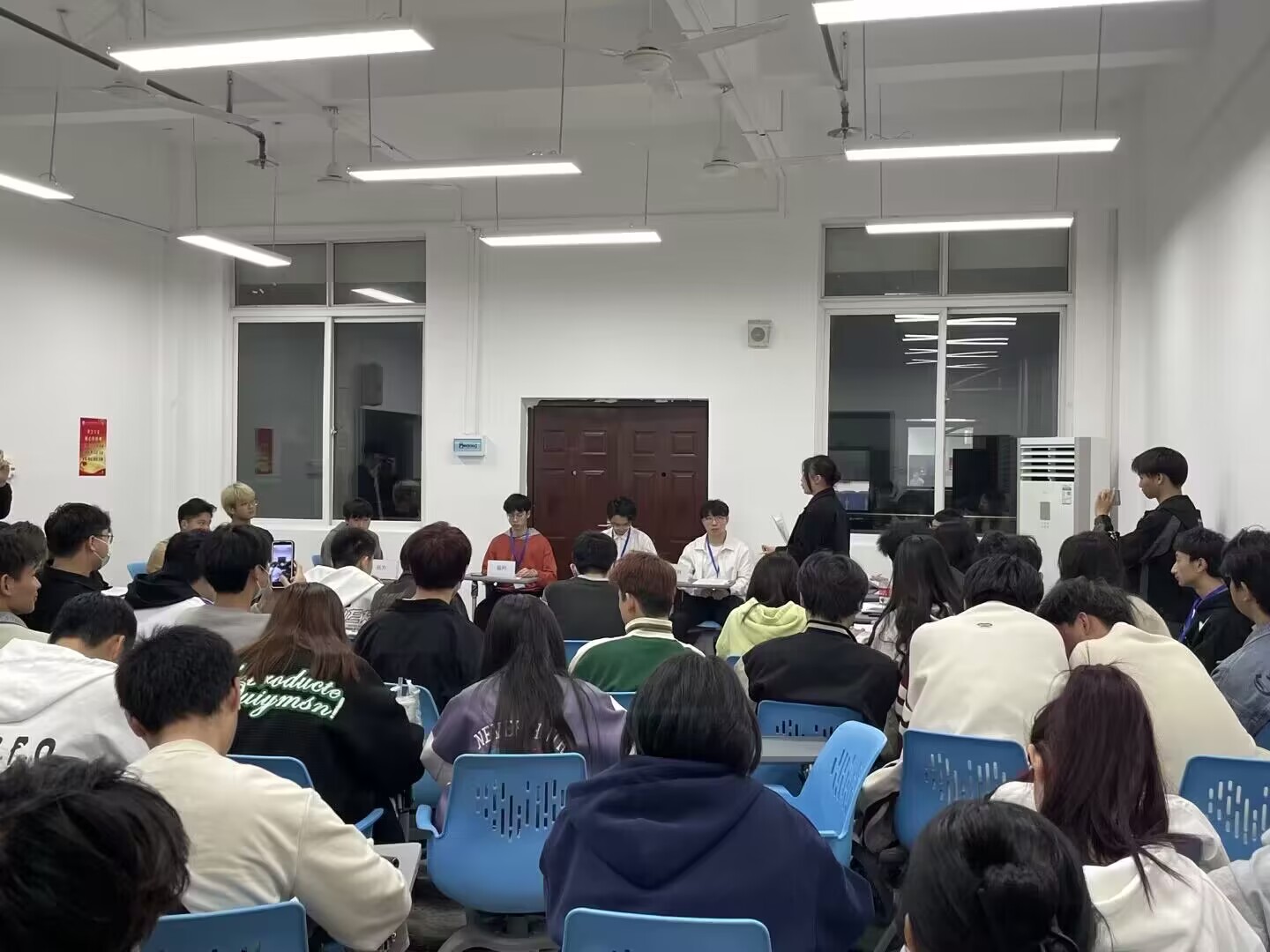 3月15日晚7点,测绘与信息公司员工会在长江楼114教室开展以“谈恋爱是否告知父母”为主题的辩论赛,参赛队伍分为正方队与反方队,由大一新生组成,评委由员工会成员担任。