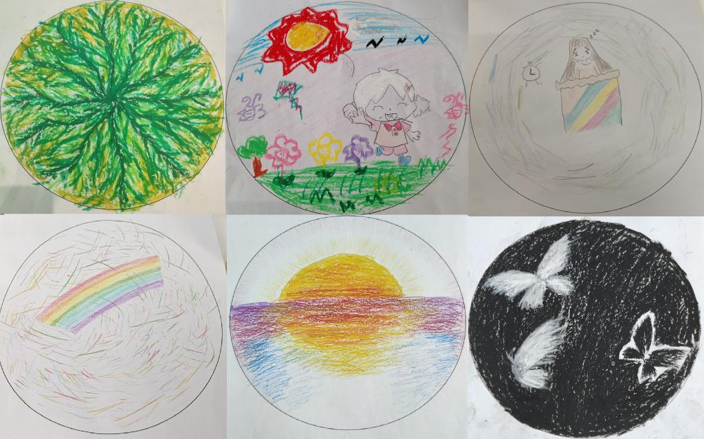 画作完成后,杨小玉引导大家开展交流和分享:你在完成这幅作品的过程中,你的感受如何?这幅作品让你联想到了什么?同学们积极发言,有的同学说:我的作品叫“落日重生”,太阳进入地平线的那一刻,既是结束,也是开始;有的同学说:我的作品叫“自愈”,在绘画过程中,我回顾了这几天的心路历程,从开始的一团墨黑到最后热烈的红,我最终找到了自己想要的东西,实现了“自愈”;还有的同学说:我在作品叫“甜心女孩”,作为班级心理委员,我要像作品中的太阳一样传递温暖,点亮别人,给大家带来满满的正能量。