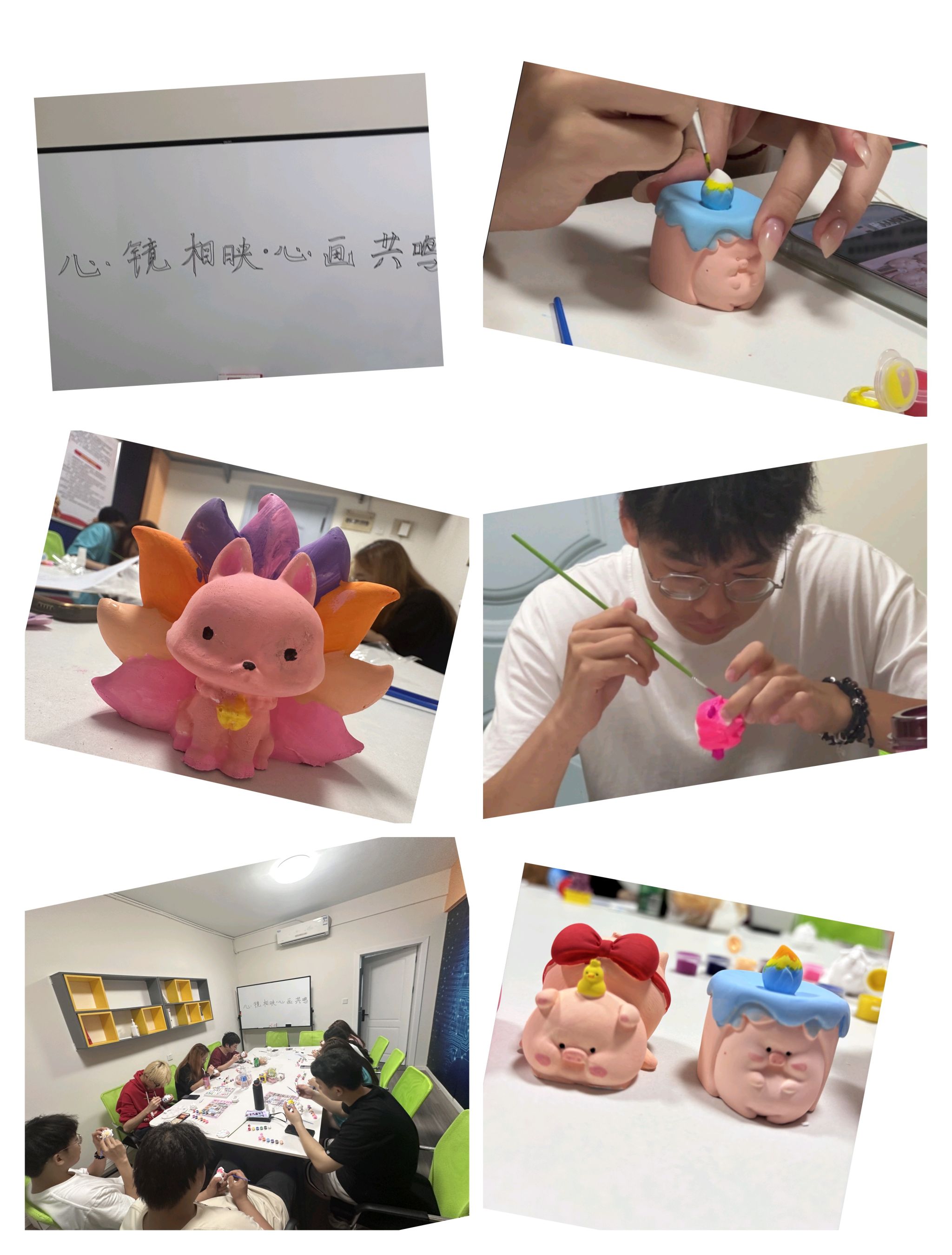 陈云介绍了活动所用材料、绘制流程和注意事项,同学们在舒缓的音乐中全身心投入到绘画当中。大家选择自己喜欢的色彩,绘制出一个个独一无二的石膏娃娃。看着自己的DIY作品,同学们成就感满满。